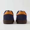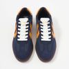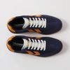 ネイビーベースにオレンジトパーズカラーのシェブロンを効かせた配色は、ジェンダーレスでありながらスタイリングのアクセントにも最適、リップストップナイロンメッシュにスエードを合わせたモデルです。
