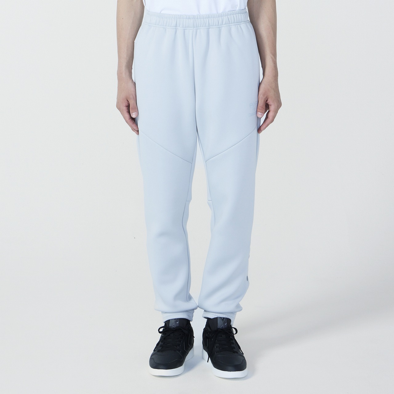 ソフトでふくらみ感のあるダンボールニットを使用したスウェットロングパンツ。膝の曲げ伸ばしを妨げない切替線もポイント。裾にはボタンが付いていてシューズを履いたまま着脱が可能。同色でマークを配置したシンプルなスウェットアイテムに。セットアップにはHAPB8025(スウエットパーカー)やHAPB8025C(スウエットクルーネック)がおすすめ。