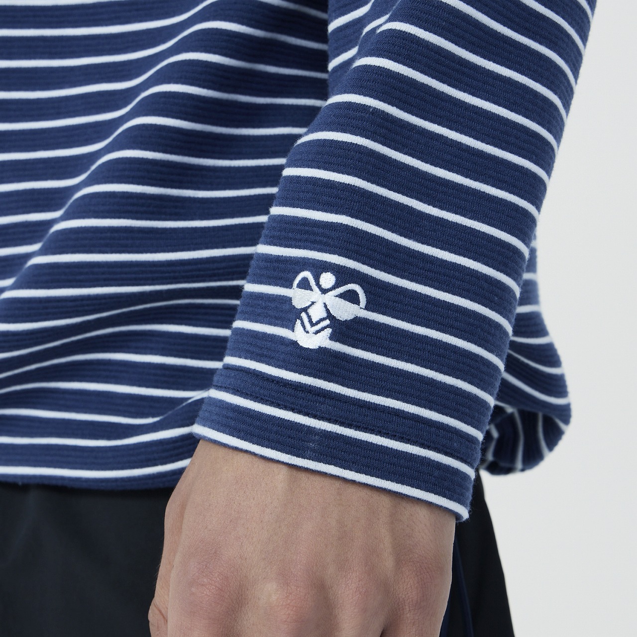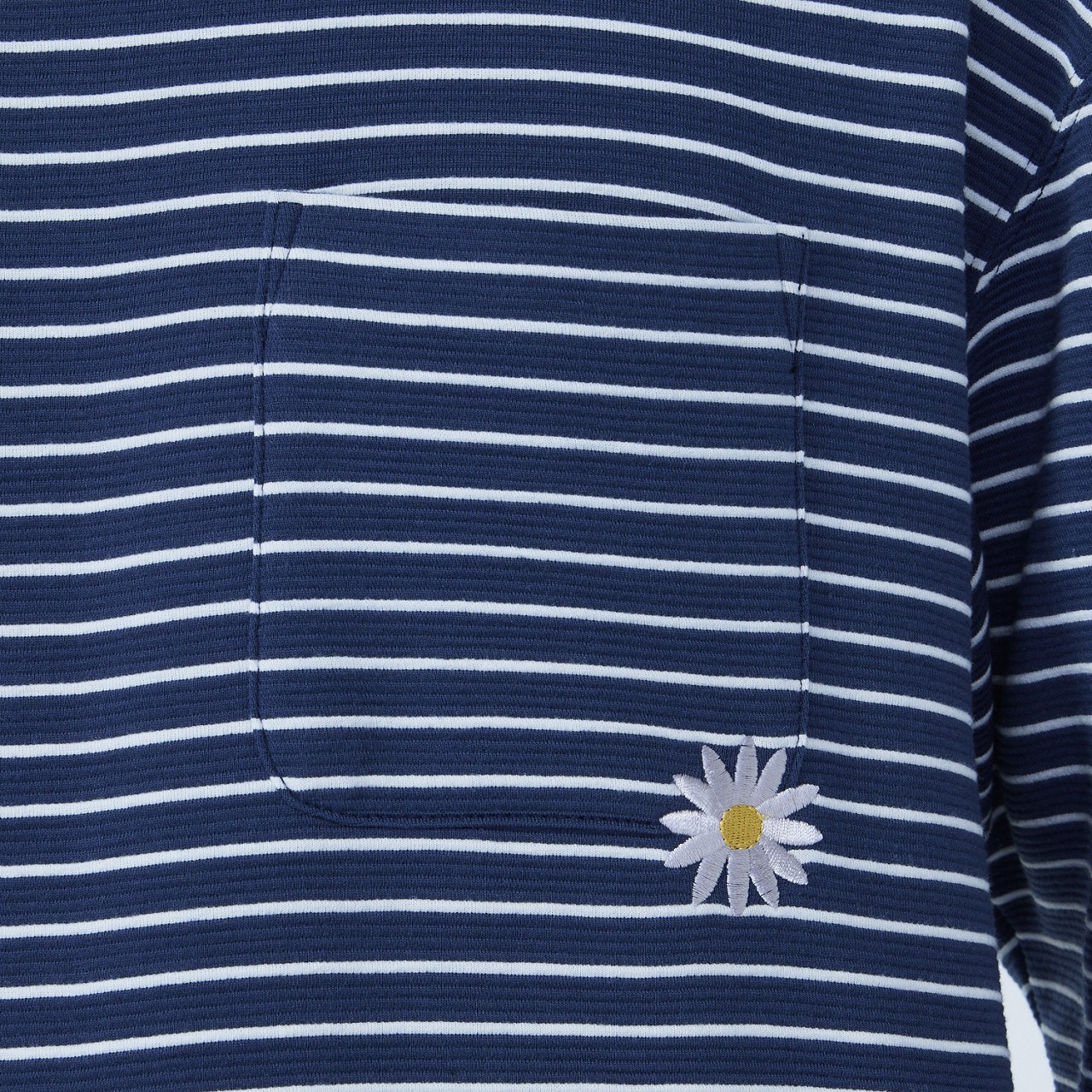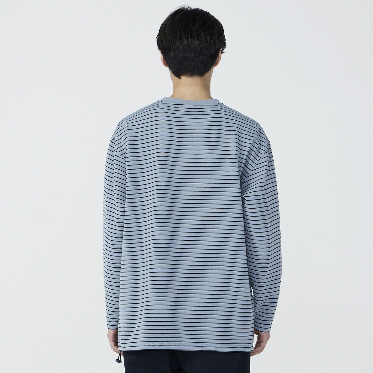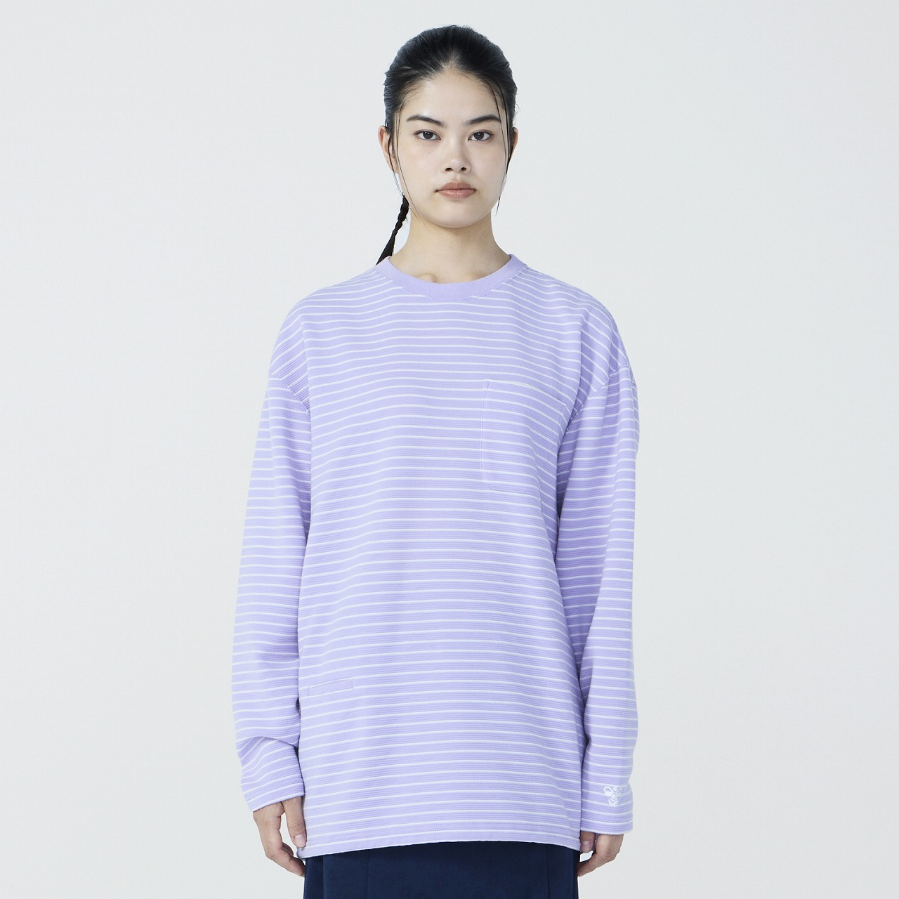 ポリエステル素材の長袖ボーダーTシャツ。吸汗速乾素材で汗をすばやく吸収し、発散、快適な着心地が持続します。リラックス感のあるゆったりシルエットで、ポケット付近のマーガレットフラワー刺繍がポイント。裾周りにはゴムスピンドルが入っており、シルエットの変化を楽しめる仕様。カジュアルにもキレイめにも着用できるアイテムです。