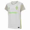 ヴェルダー・ブレーメン 2025-2026アウェイユニフォーム。清潔感のある雪のように白いベースに、雲のようなコントラストのディテールと、シェブロン、hummelロゴ、クラブバッジにネオングリーンのハイライトを施しています。デボス加工のSVWストライプはフロント、バック、袖に施され、クラブのアイデンティティを称える独特の質感のあるデザインを生み出しています。100%リサイクルポリエステルを使用したこのジャージは、快適なリブ編みのクルーネックが特徴です。首の内側にはネオングリーンの「LEBENS LANG GR?N ? WEISS」のプリント、胸元にはhummelロゴとクラブバッジが誇らしげにあしらわれています。サイドパネルにはヒュンメルの特徴的なシェブロン模様が施されたアイテムです。