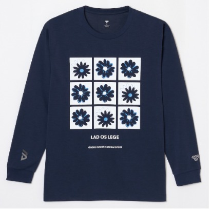 素材は毛羽が少ないとされる紡績糸で編み立てたMVS天竺を使用したコットンライク長袖Tシャツ。吸汗速乾素材で汗をすばやく吸収し、発散、快適な着心地が持続します。また、UVカット機能も。フロントにはポップアートなフラワーをプリントした合わせやすいアイテム。