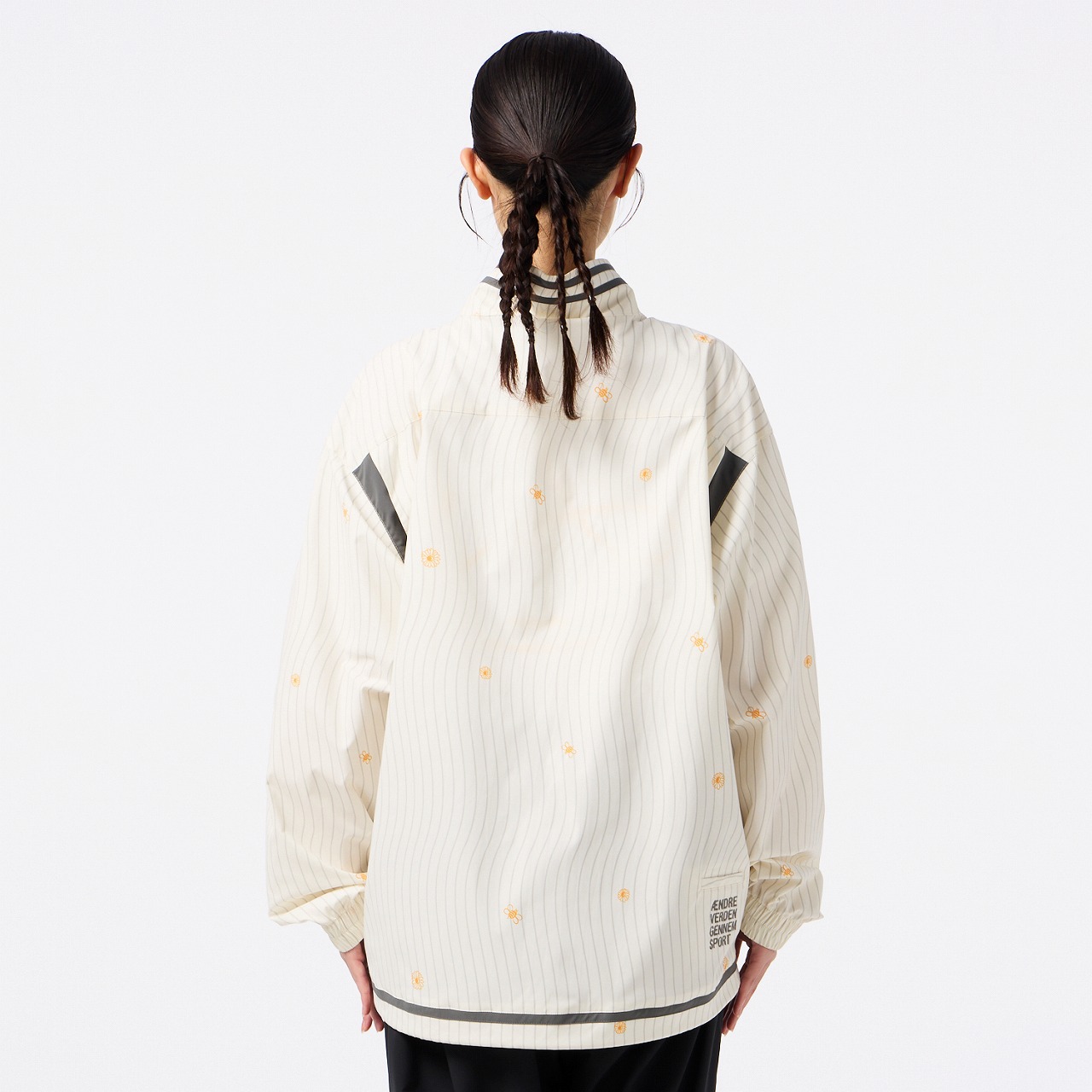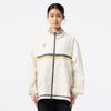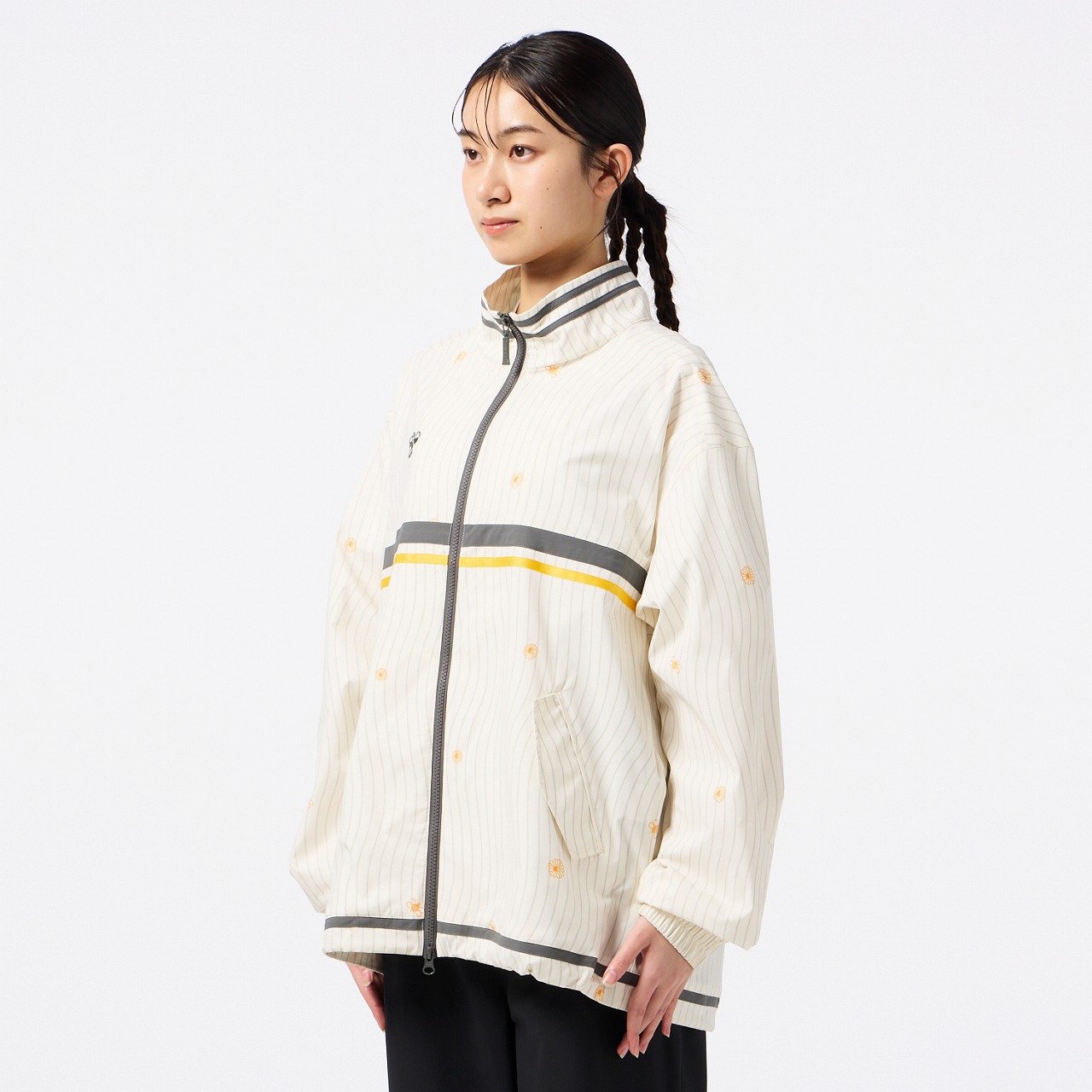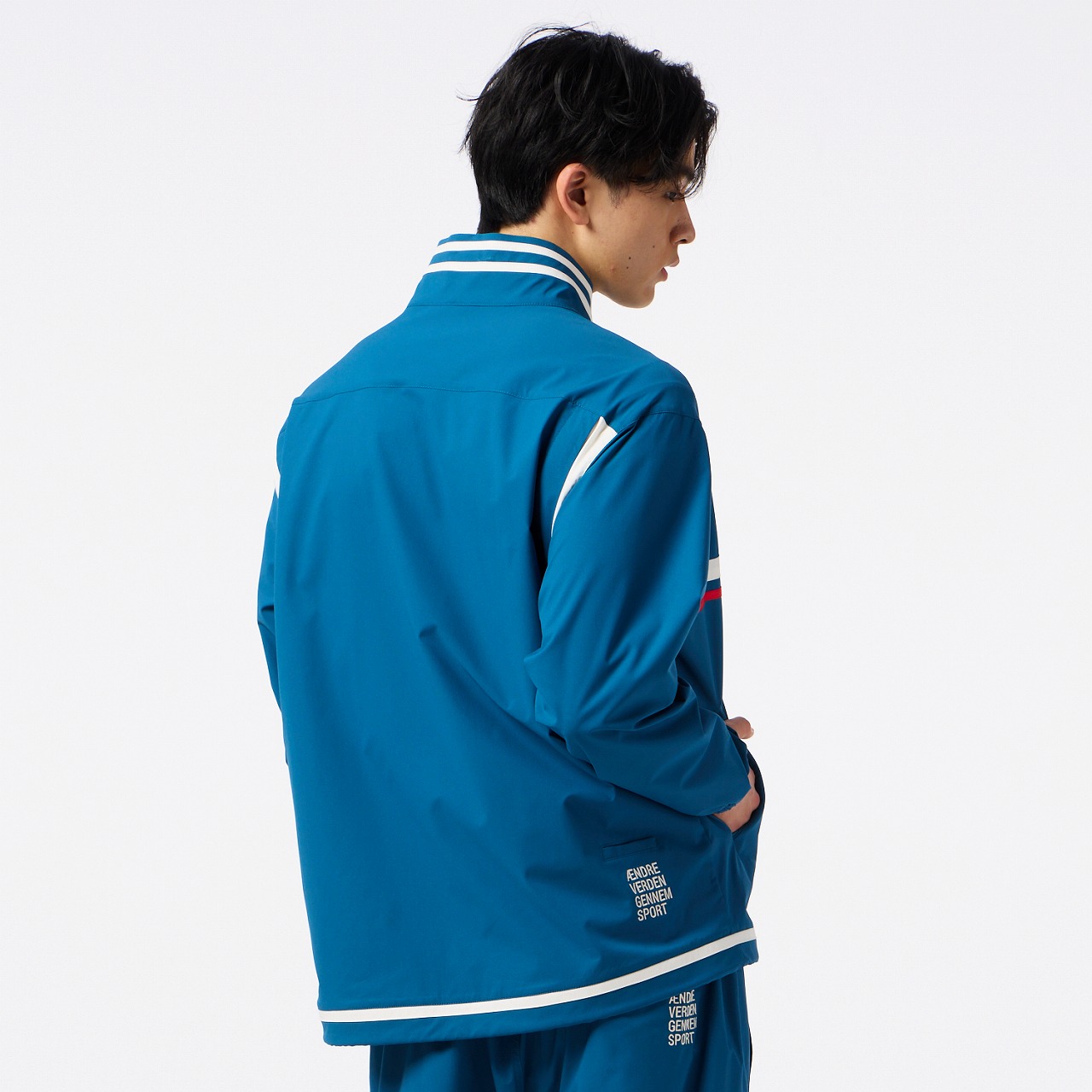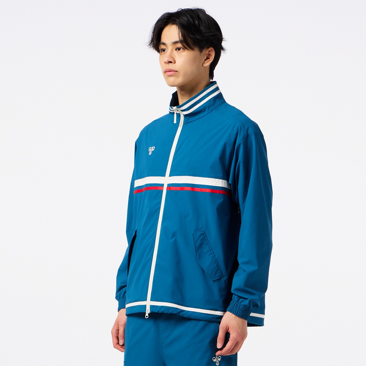 撥水性のあるストレッチ素材を使用したクロスジャケット。ダブルジップ仕様で、上下どちらからも開閉できるため、着こなしの自由度が高く、シルエット調整やインナー見せなど、もでき、また、左裾のゴムスピンドルでシルエットに変化をつけられるので、多様なコーディネートが楽しめます。右胸にはバンブルビーのロゴを刺繍、バックの裾口にはヒュンメルのブランドミッション『change the world through sport.』をデンマーク語で刺繍しました。クロスパンツ(HAW2209P)とのセットアップがおすすめ。