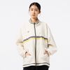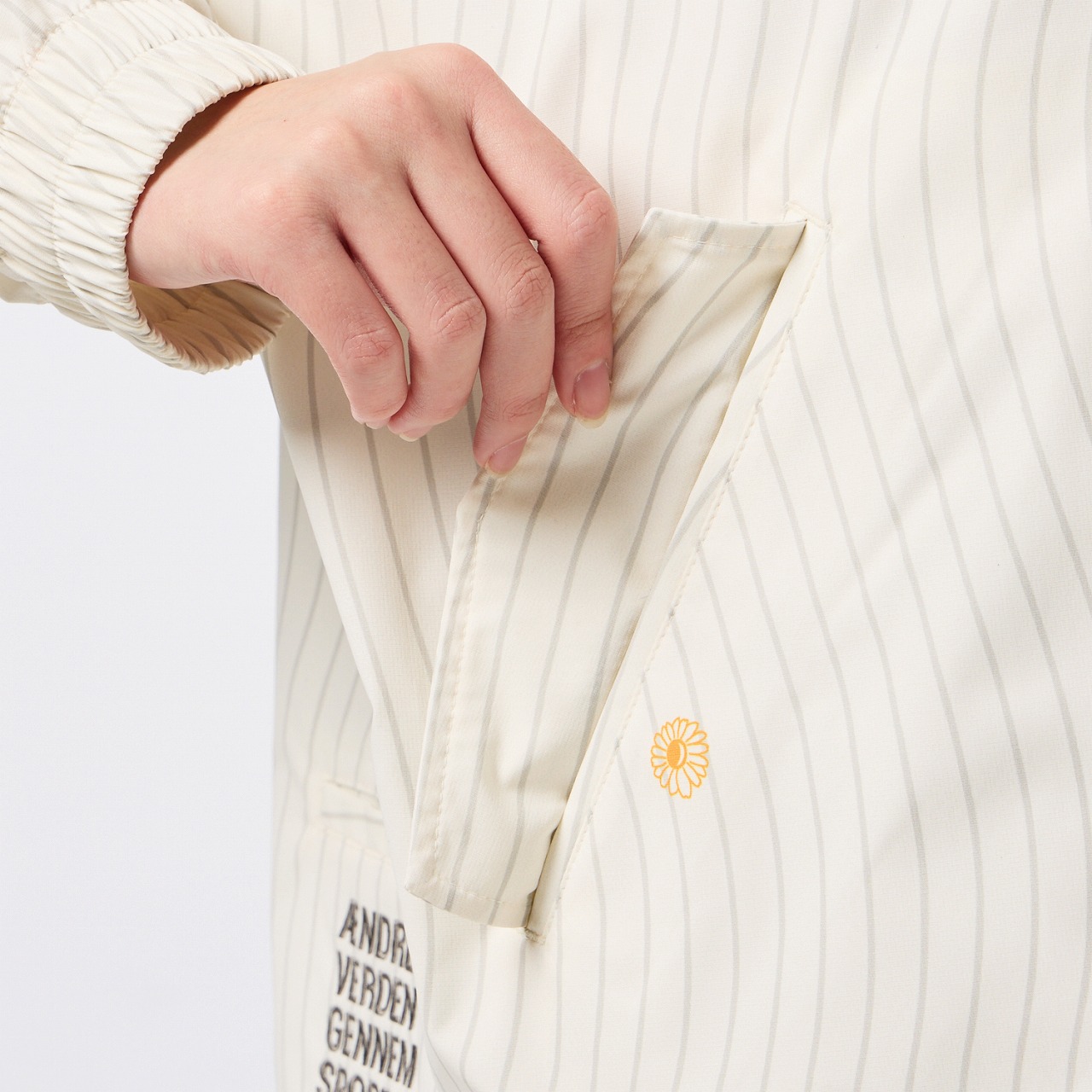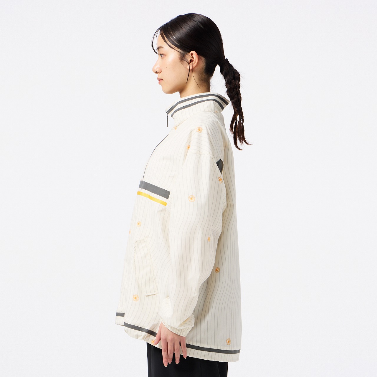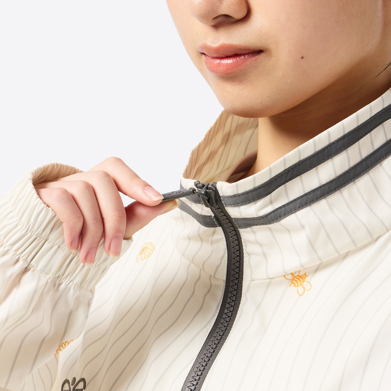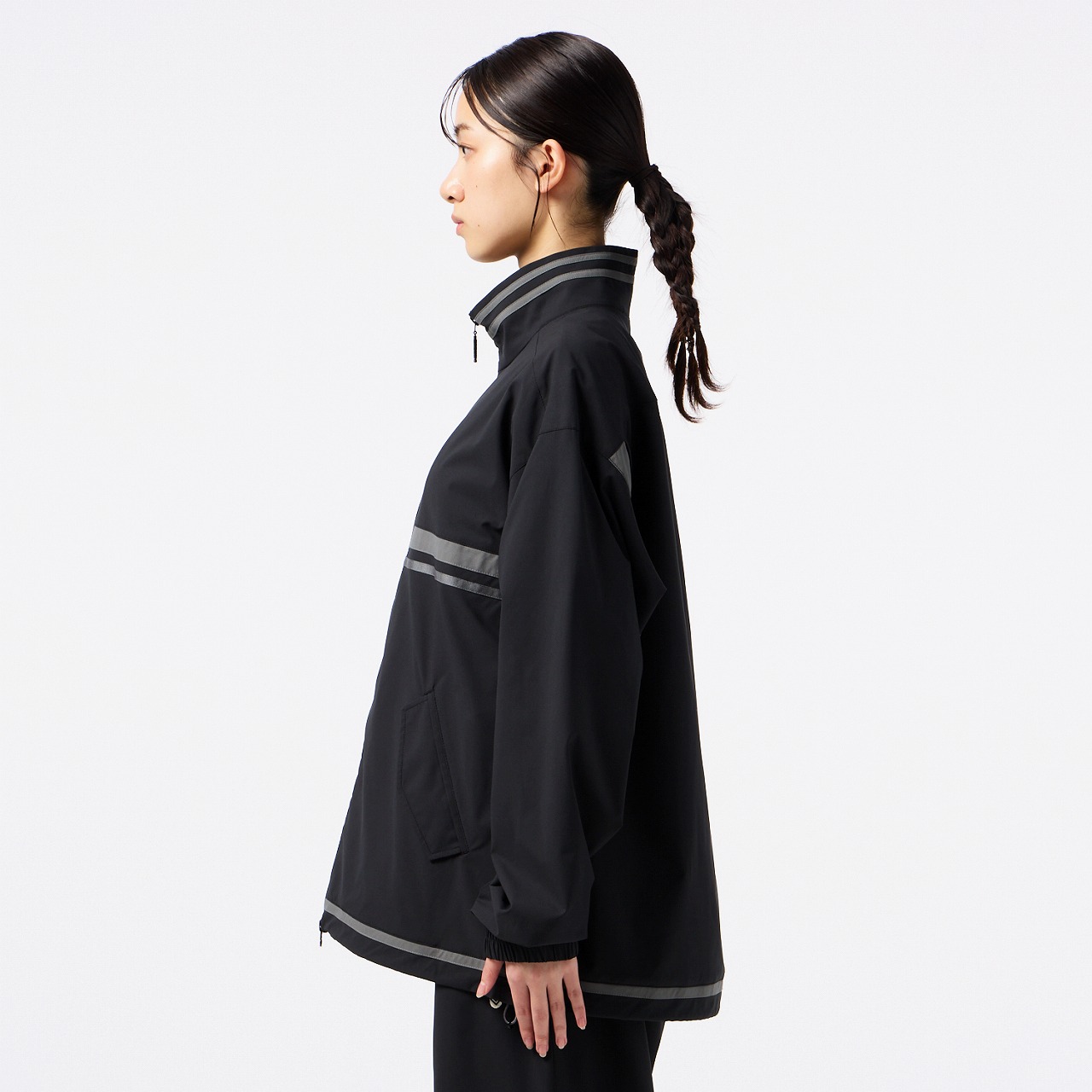 撥水性のあるストレッチ素材を使用したクロスジャケット。ダブルジップ仕様で、上下どちらからも開閉できるため、着こなしの自由度が高く、シルエット調整やインナー見せなど、もでき、また、左裾のゴムスピンドルでシルエットに変化をつけられるので、多様なコーディネートが楽しめます。右胸にはバンブルビーのロゴを刺繍、バックの裾口にはヒュンメルのブランドミッション『change the world through sport.』をデンマーク語で刺繍しました。クロスパンツ(HAW2209P)とのセットアップがおすすめ。