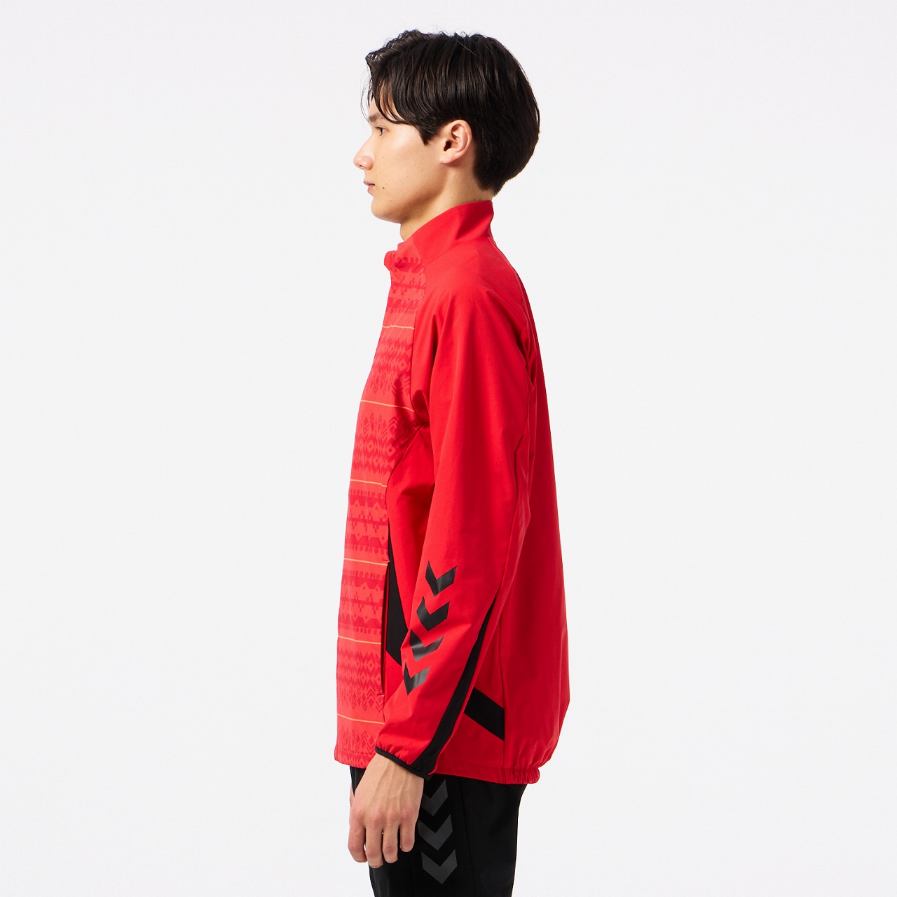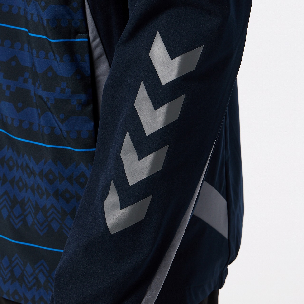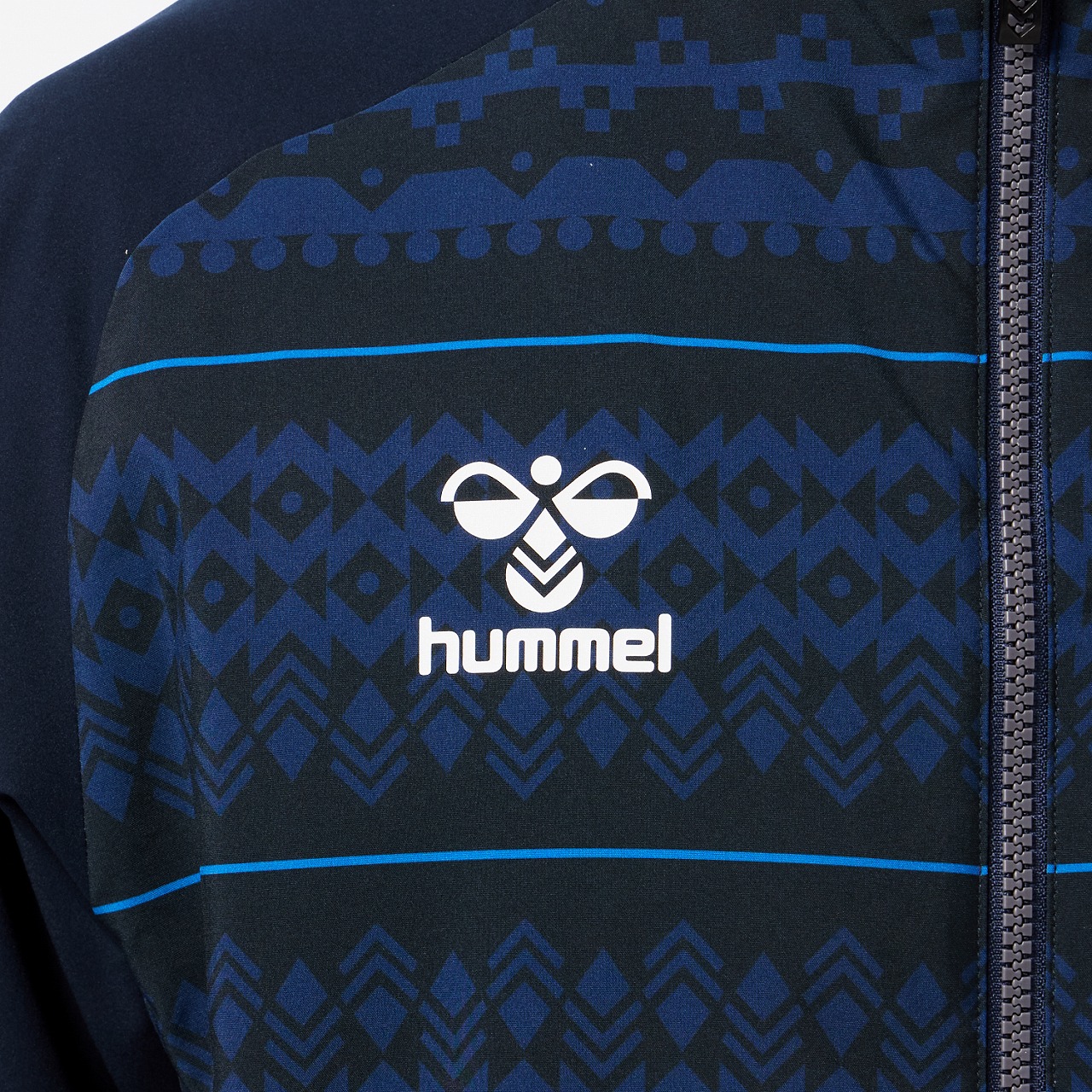 表地は伸縮性に優れたウーブン素材を使用し、裏地にはストレッチ性のある起毛素材を使用。立体的なパターン設計で運動性能を追求した裏付きウーブンジャケット。ヒュンメルのバンブルビーロゴの要素で構成されたノルディック柄を採用。撥水素材なので多少の雨も安心です。セットアップにはウーブンパンツ(HAW2205P)がおすすめ。