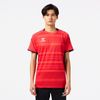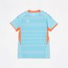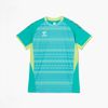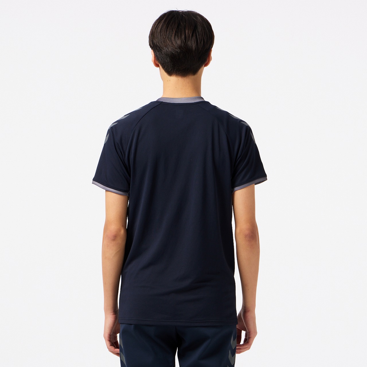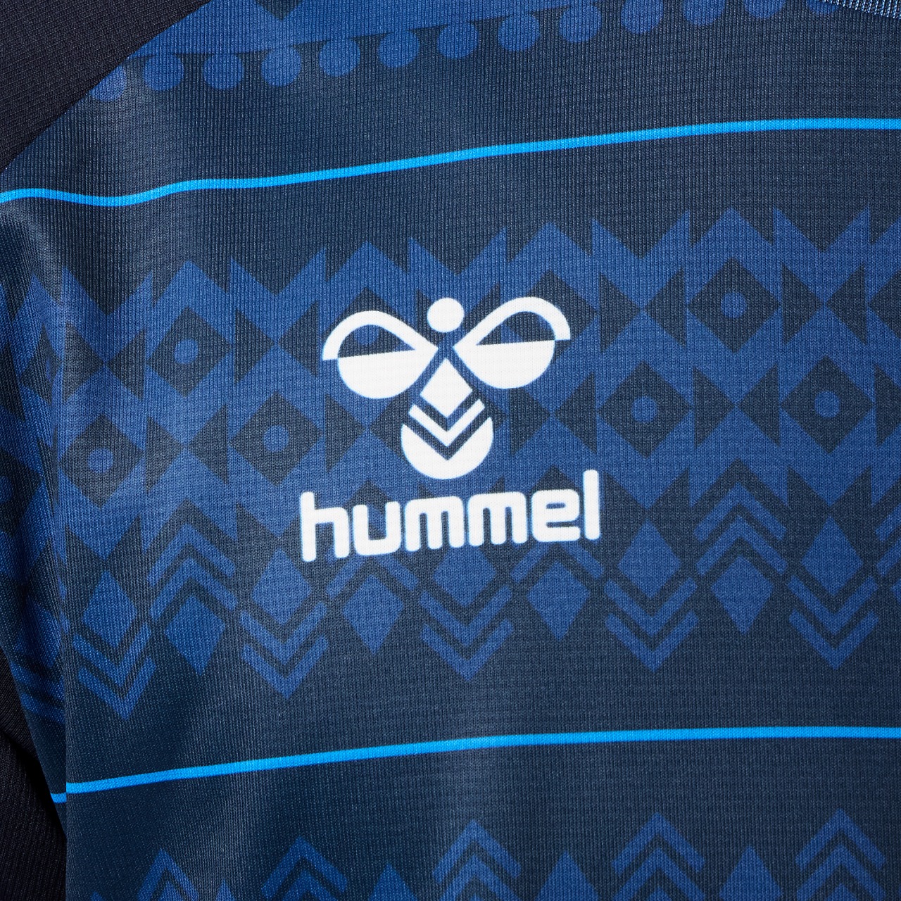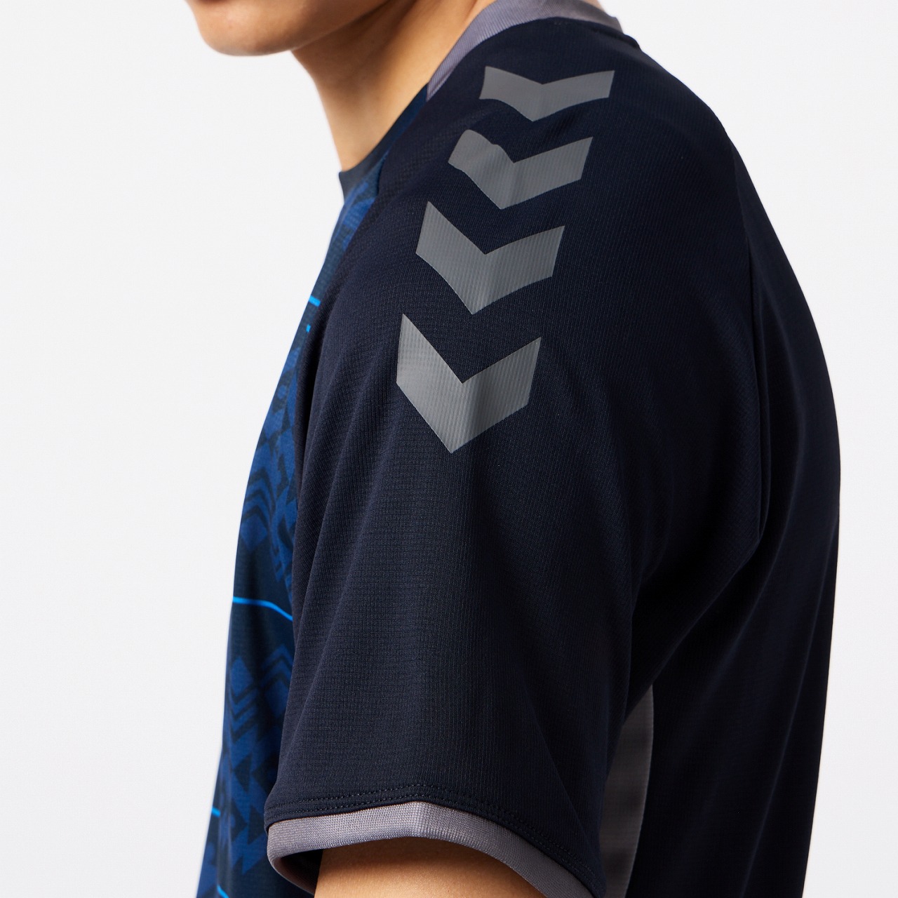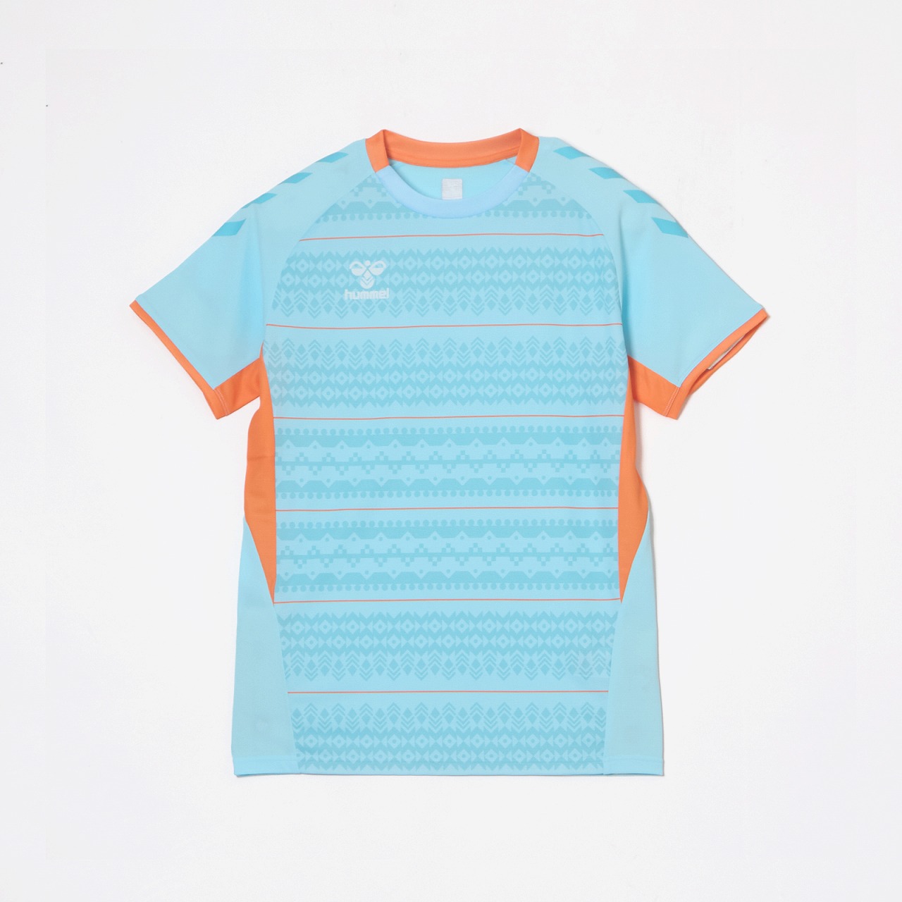 汗をかいたときの肌への張り付きを軽減する肌面撥水糸を使用した素材を採用。また、吸汗速乾素材で汗をすばやく吸収し発散、UVカット効果もあり、プレー中の不快感を軽減させ、快適な着心地を追求します。ヒュンメルのバンブルビーロゴの要素で構成されたノルディック柄を採用したアイテムです。