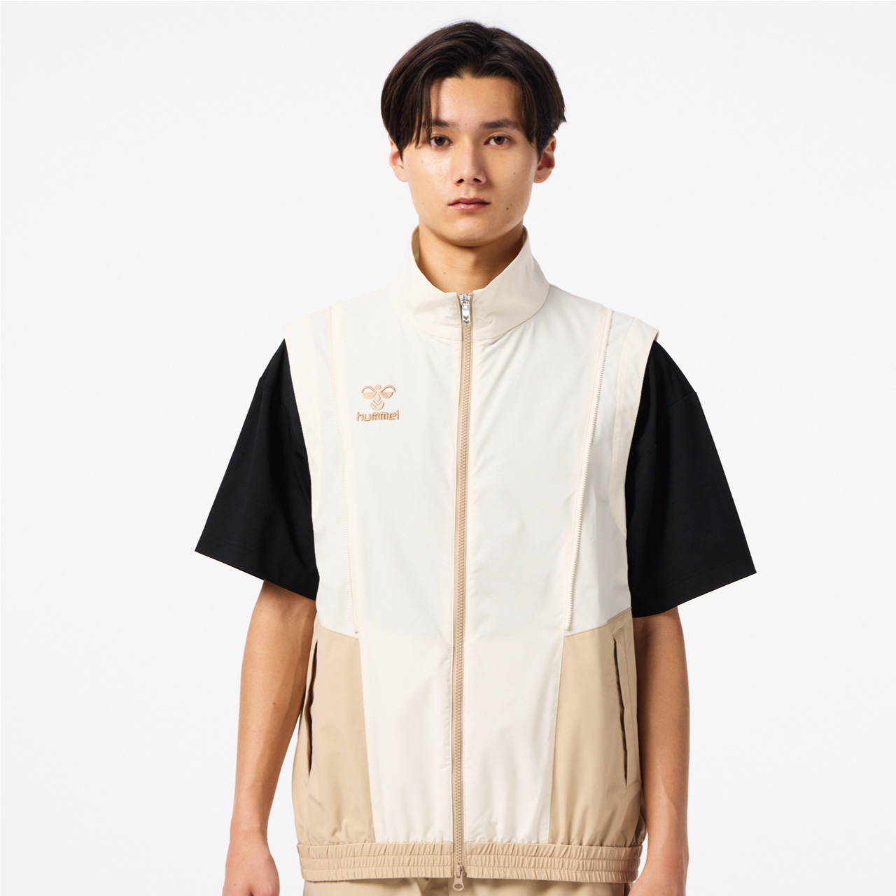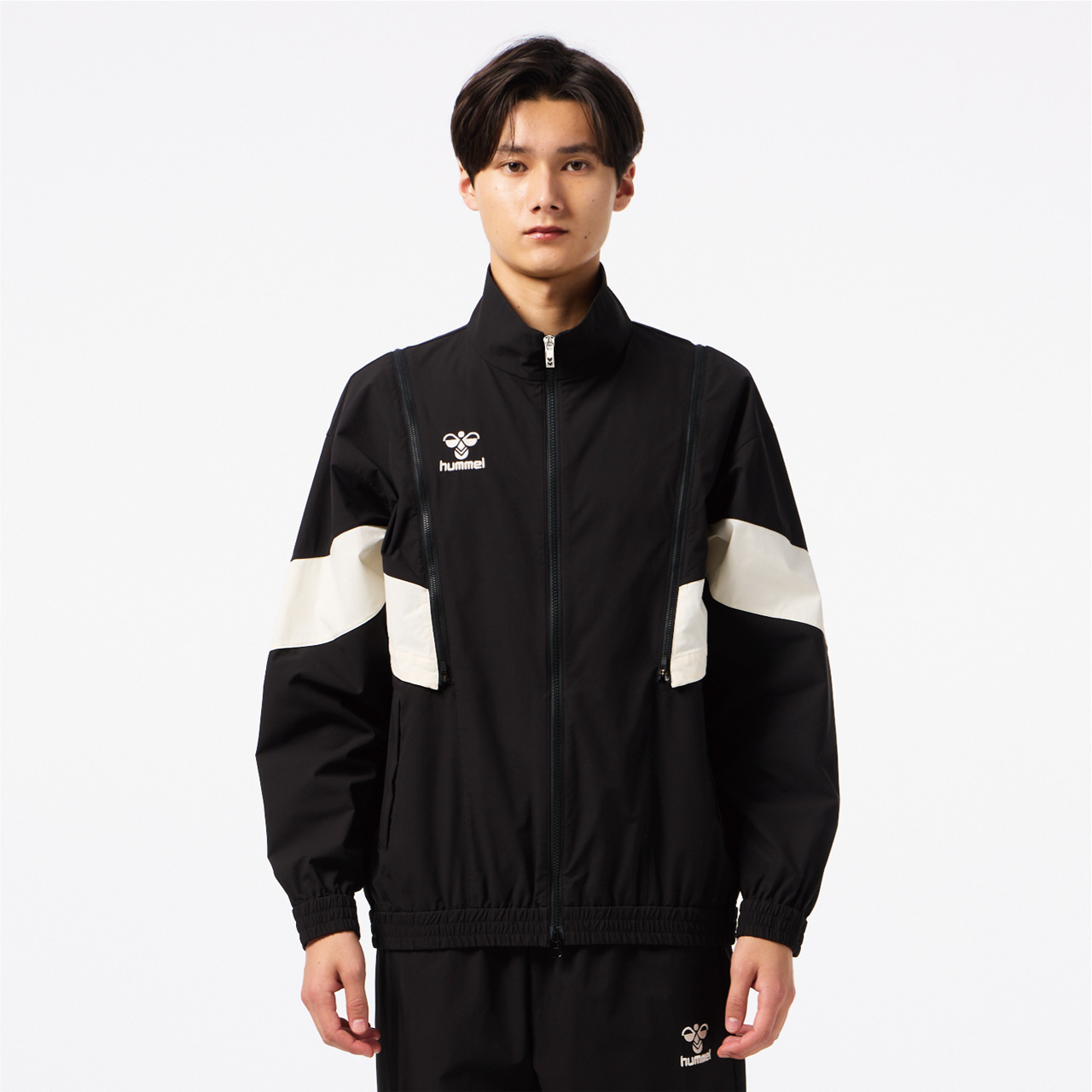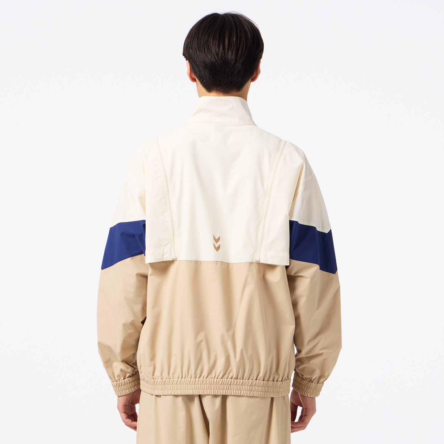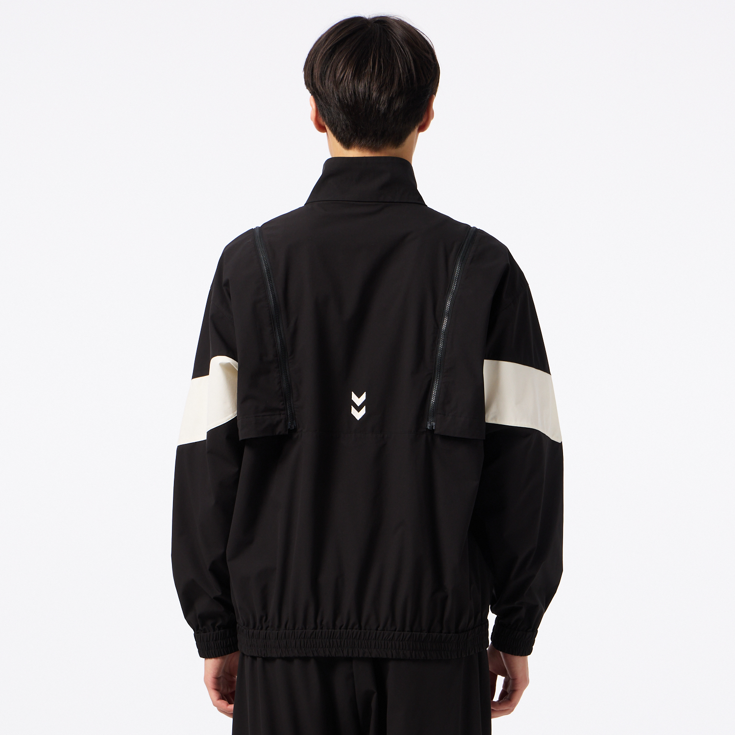 程よいストレッチ性があり撥水加工を施した素材のウーブンジャケット。オーバーシルエット。背中にはベンチレーションがあり、通気性も◎。肩からのジップを取り外すと袖を外してベストとしても着用でき、長いシーズン着用し、コーディネートを楽しめるアイテム。セットアップにはクロスパンツ(HAW2207P)がおすすめ。