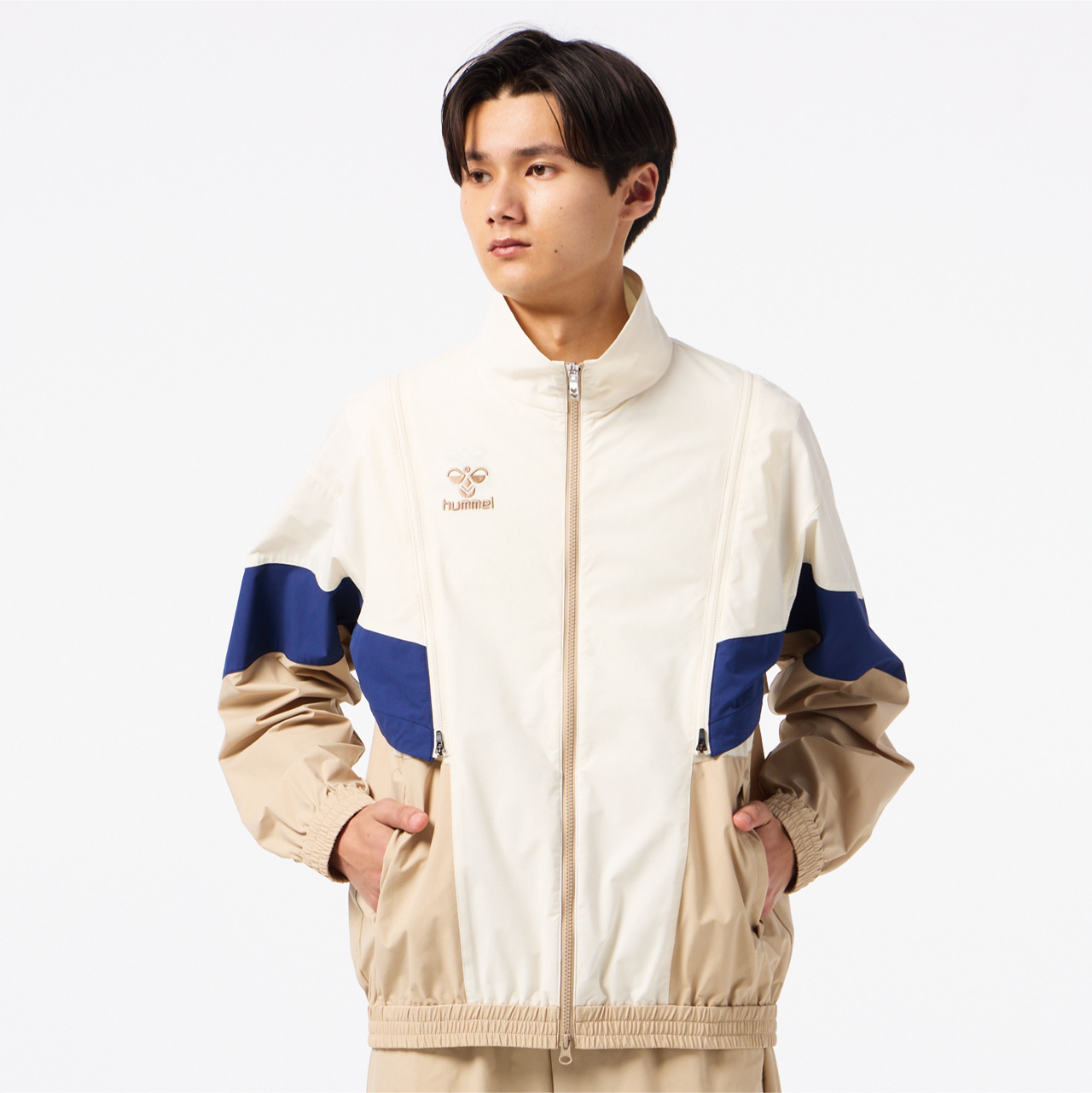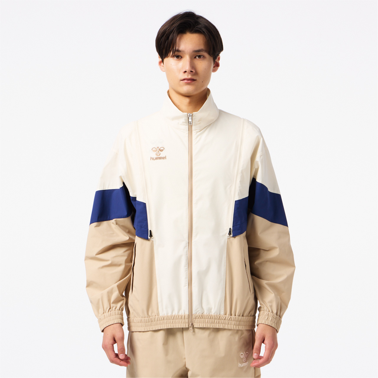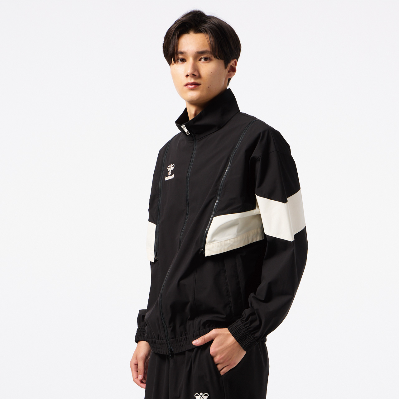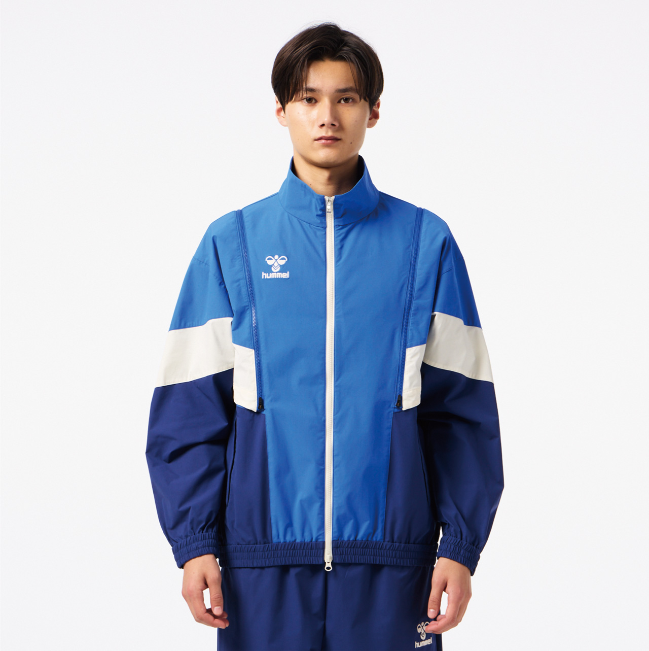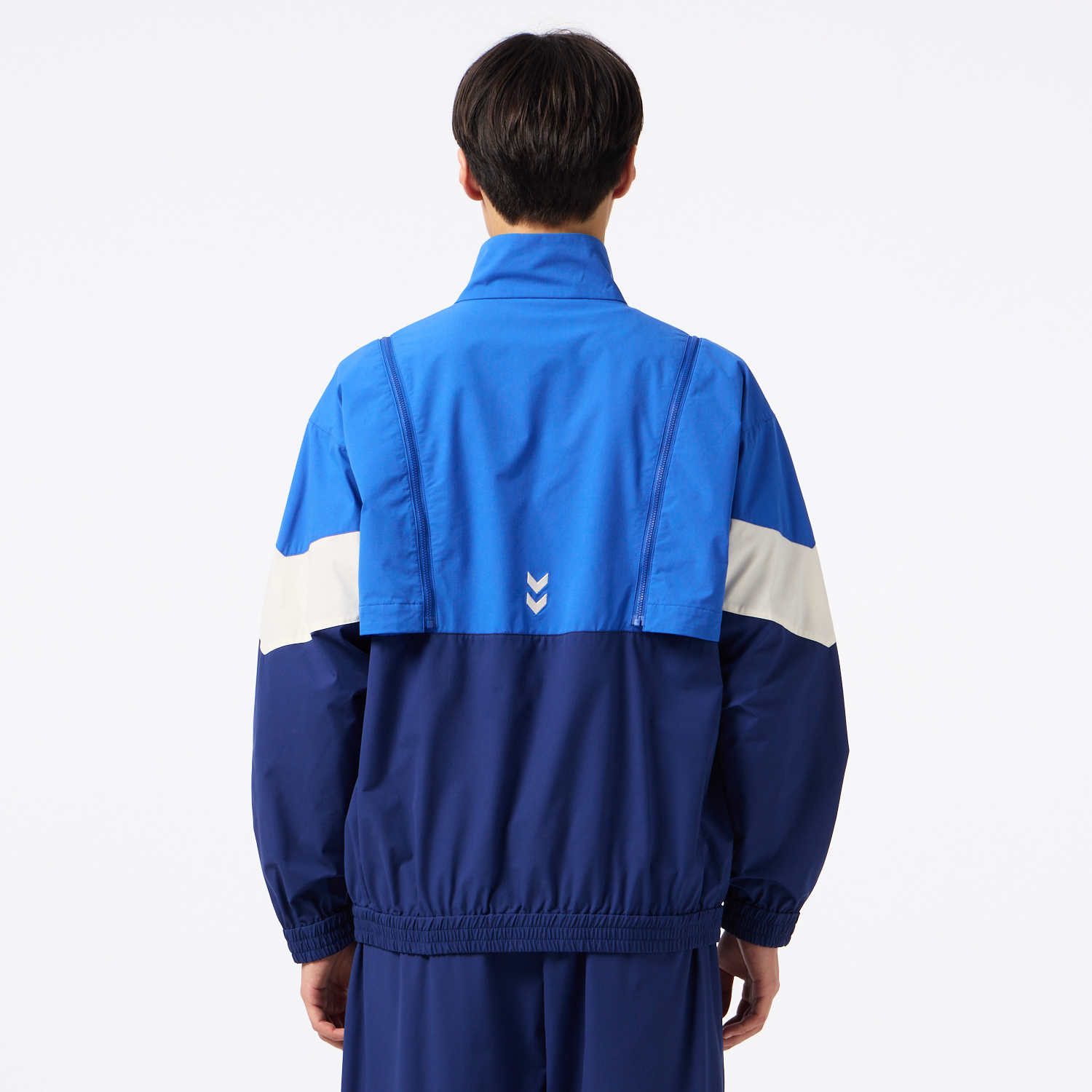 程よいストレッチ性があり撥水加工を施した素材のウーブンジャケット。オーバーシルエット。背中にはベンチレーションがあり、通気性も◎。肩からのジップを取り外すと袖を外してベストとしても着用でき、長いシーズン着用し、コーディネートを楽しめるアイテム。セットアップにはクロスパンツ(HAW2207P)がおすすめ。