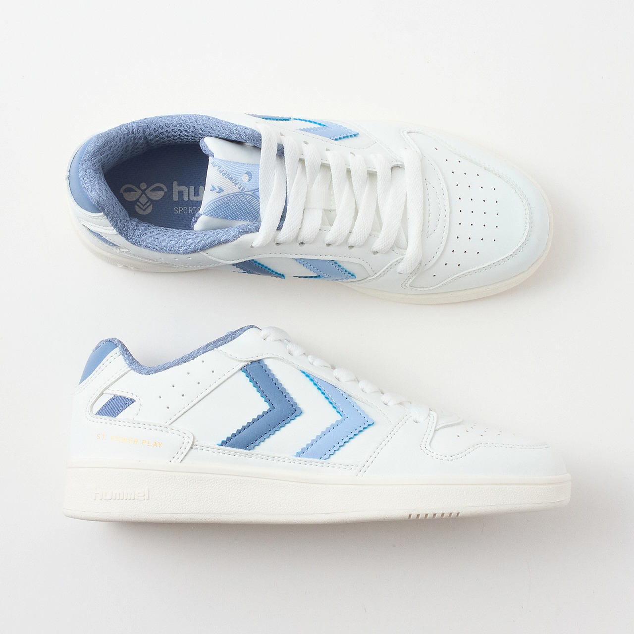 ST Power Playは、1980年代hummelがテニスで注目を集めた頃に生まれたコートシューズをスニーカーへリバイバルした定番モデルです。アッパーサイド部のシェブロンラインにバイカラーを採用し、シンプルでどんなコーデにも合わせやすいアイテムです。